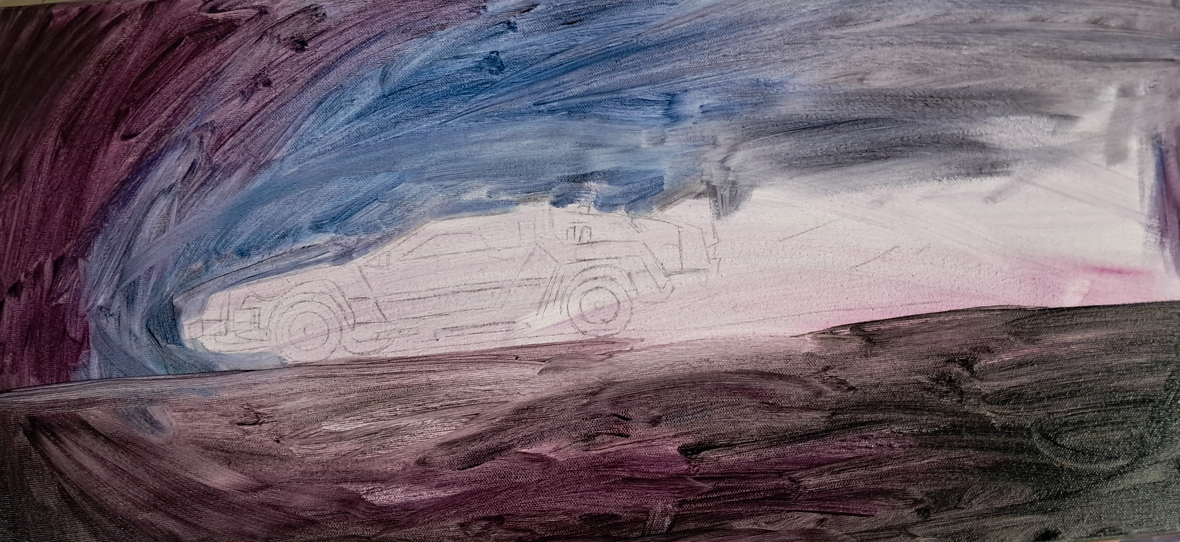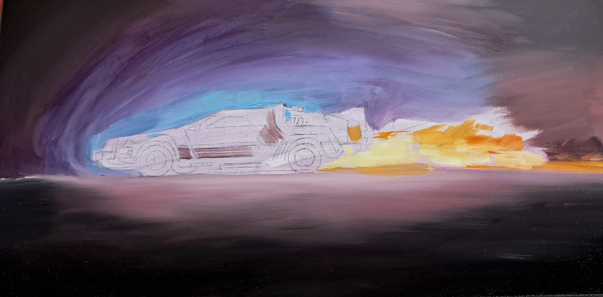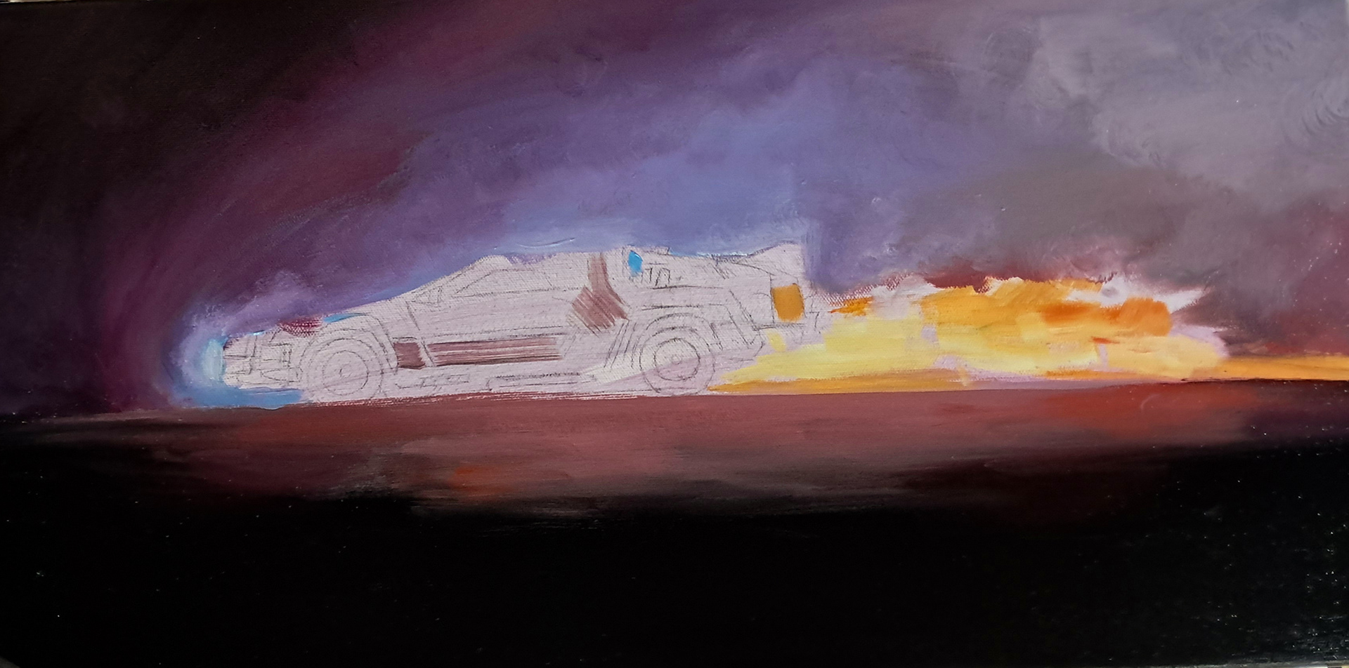12" x 24" oil paintingĀ of the Delorean from Back to the Future (Oct. 2024)